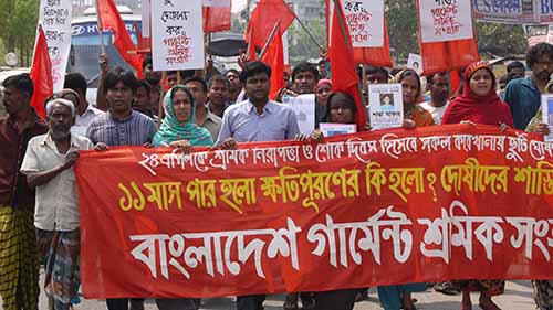 Two years have passed, but compensation for the Tazreen fire victims hasn’t been completed either. At least 112 died, but only the families of the 99 workers whose bodies were found received 700,000 taka (US$9,000) each. In the fire that took 17 hours to extinguish, many bodies burned to ashes. 13 workers were later identified by DNA analysis of the ashes, but their families haven’t received compensation yet. Saydia who’s been interviewing the survivors and the families of missing workers for the last two years believe between 12 and 23 more workers had died in the fire. Advocate Asaduzzaman who represent the victims is arguing that the compensation should be much bigger than 700,000 taka, since the fire was more of a case of gross negligence than a mere industrial accident.