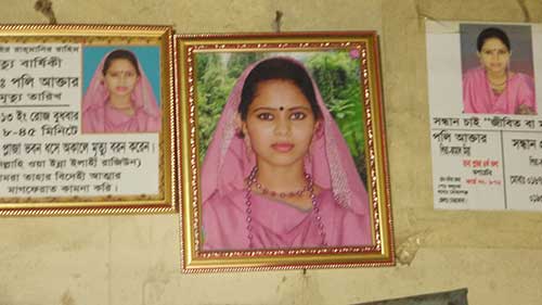 Dhalia printed thousands of copies of Poly’s photo which was originally taken to show to bridegroom candidates. Dhalia and her family and friends handed out the photos with their phone numbers written to the rescuers at the hospital, the site of the collapse and other places. Eight days after the collapse, Poly’s body was found in the ruins of Rana Plaza.