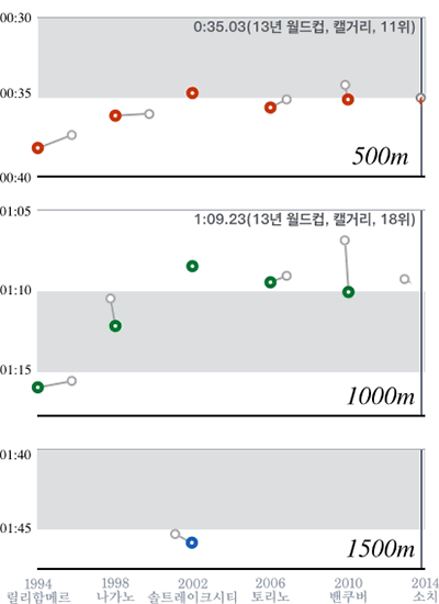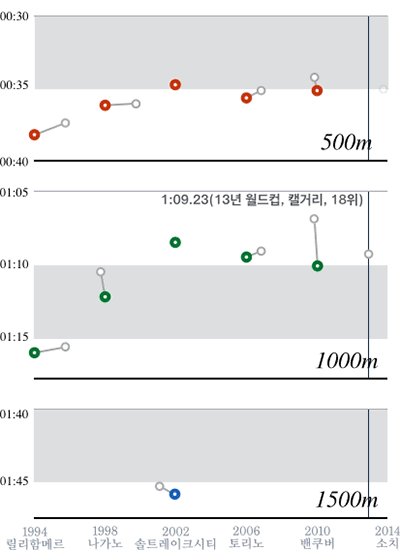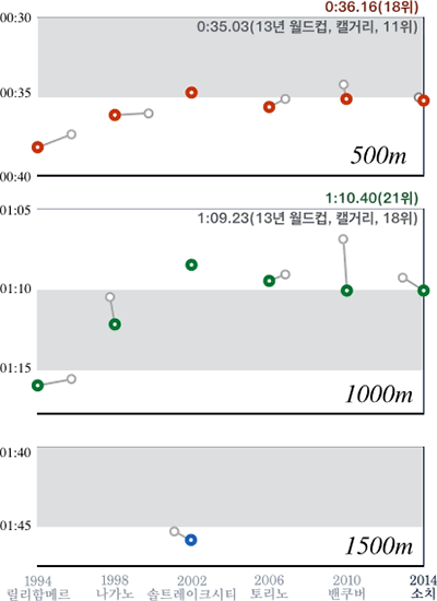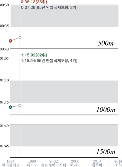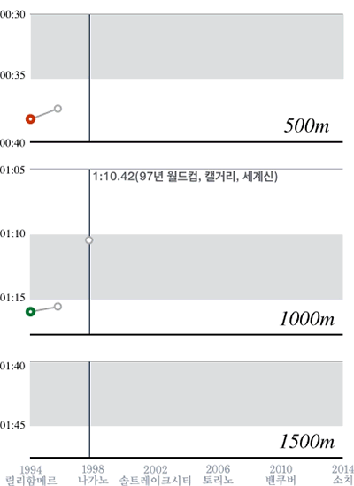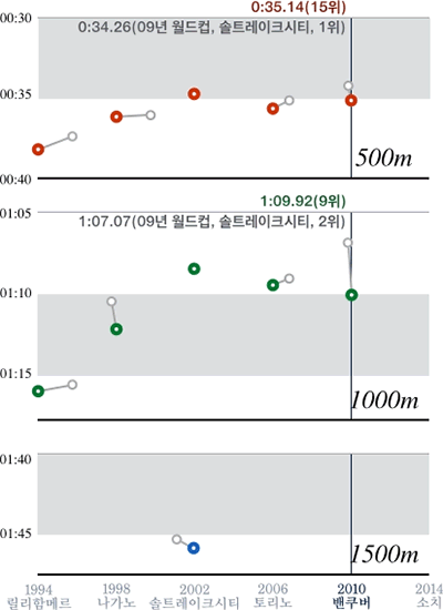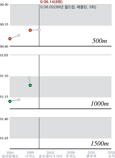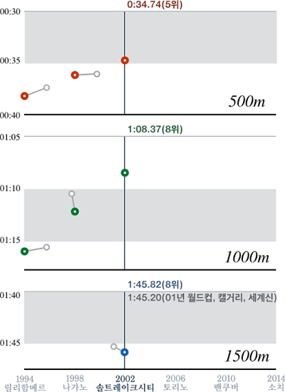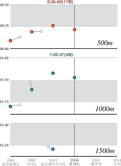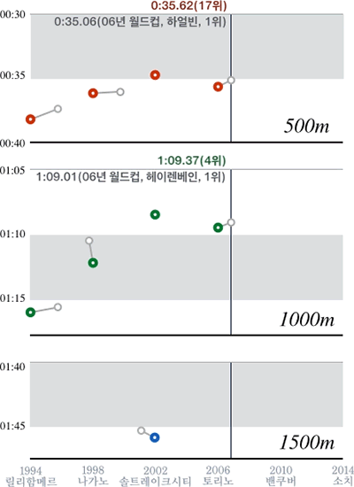그러나 운명은 얄궂었다. 올림픽의 여신은 규혁이 내민 손을 또다시 뿌리쳤다. 500m, 1000m, 1500m에 출전했지만 각각 5·8·8위에 그쳤다. 월드컵 등 다른 세계대회에서 펄펄 날다가 올림픽에만 나가면 힘을 못썼다. 지독한 징크스였다.