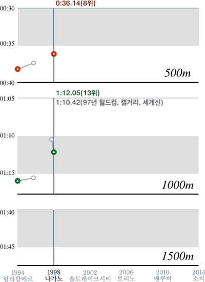 이제 관심은 자연스레 1998년 나가노 올림픽으로 옮겨갔다. 규혁에겐 2번째 올림픽 도전이었다. 16살 때 첫 출전했던 릴레함메르 올림픽과는 달랐다. 규혁의 기량은 괄목상대, 파죽지세였다. 게다가 세계신기록까지 세운 터였다. 주위의 눈높이는 부쩍 올라갔다.