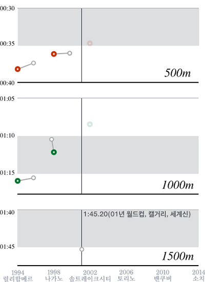 규혁의 모험도 주효했다. 이 대회를 앞둔 시점은 스케이트날의 발 뒤꿈치 부분이 스케이트화와 분리가 되는 ‘클랩 스케이트’가 전 세계적으로 전파되던 때였다. 새로운 스케이트화의 도입 여부를 놓고 빙상계에서도 반신반의 하는 분위기였다. 0.01초를 다투는 단거리 경기에서 새 스케이트를 바꾼다는 건 적잖은 위험부담이 따랐다.