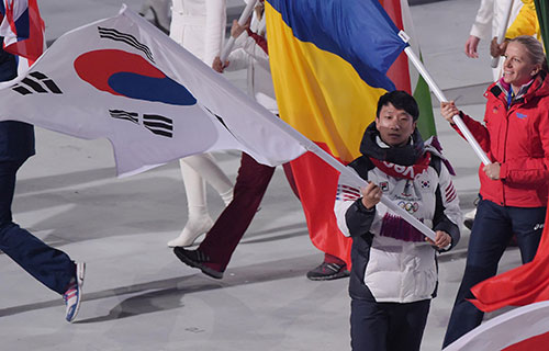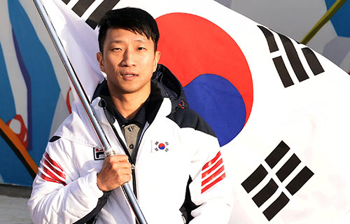 소치 공항에 도착한 대표팀 기수 이규혁. 뉴시스
