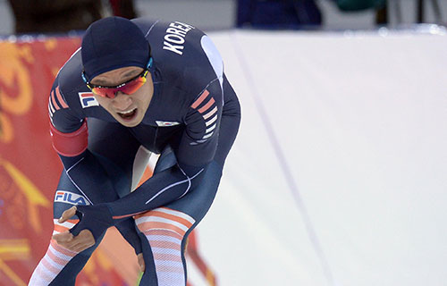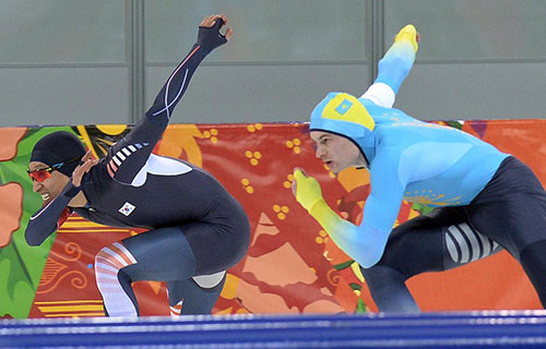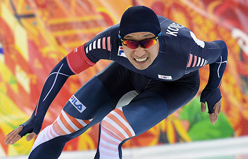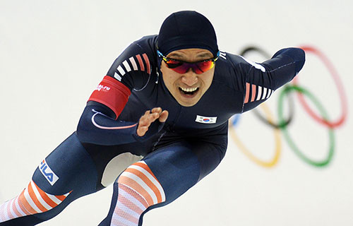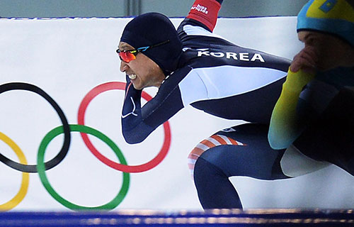 2010년 2월16일 캐나다 리치먼드 올림픽 오벌 빙상장에서 제20회 겨울올림픽 스피드스케이팅 남자 500m 결승에서 이규혁이 역주하고 있다. 이규혁은 강력한 금메달 후보로 꼽혔으나 500m 결승 당일 정빙기 고장으로 경기가 수 차례 지연되면서 컨디션 조절에 실패했다. 연합뉴스